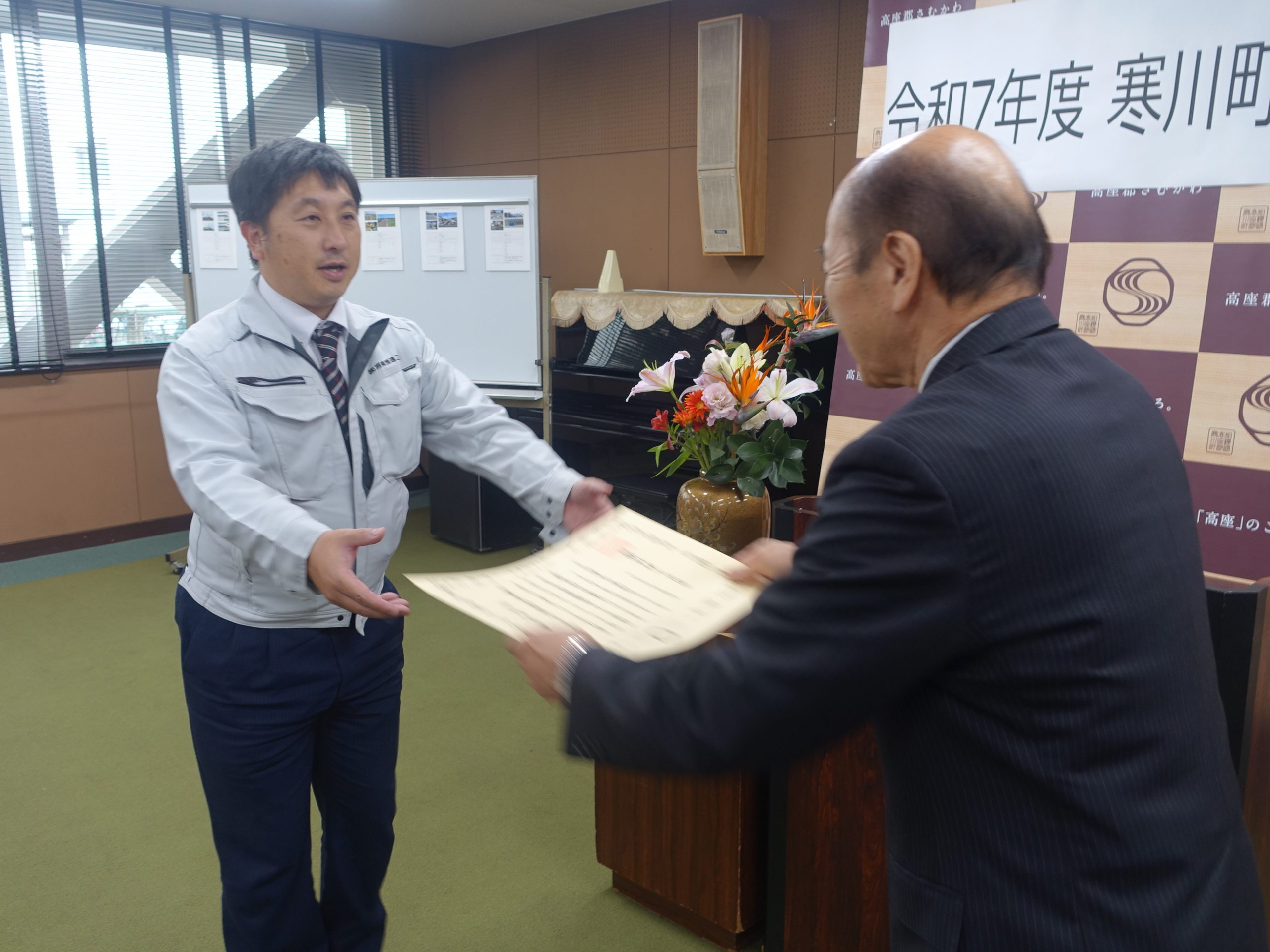 令和7年11月11日、寒川町役場にて寒川町様より令和7年度寒川町優良建設工事表彰をいただきました。 この賞は、前年度に竣工した工事のうち、推奨すべき実績を収めた施工者を寒川町が表彰しています。